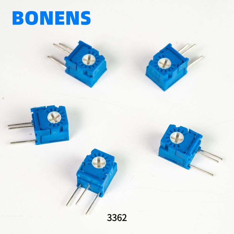 3362 series metal glass glaze preset Potentiometer is a single turn adjustable Potentiometer, metal ceramic Potentiometer, micro package, and the rotor is designed for the automatic adjustment interface of the machine; Sealed, capable of withstanding harsh environments and immersion cleaning; Built-in board bracket and multi wire brush can effectively reduce contact resistance changes